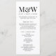 Modern Black and White Wedding Program. Stylish, elegant design with black text on white. Front includes couple's initials, wedding date, thank you section and the ceremony program. The back features the names of the wedding party.