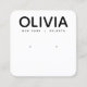 Simple white background square earring display holder with two printed hole "markers". Rounded corners and bold modern typography.