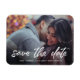 Modern photo save the date magnet featuring your horizontal full bleed picture with a text overlay. The words, "save the date" are in a white brush script handwriting font. A simple yet elegant design that makes your photo the main feature.