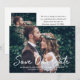 Announce your wedding date to family and friends! This modern wedding save the date announcement card design features a horizontal photo of the engaged couple on the front with a white brushed "Save our Date" calligraphy script overlay and a monogram of bride and groom names and wedding date that can be personalised. The back of the card includes a second photo in a vertical format and simple black text that can be personalised with your wedding details. Note, the black and white colours can be modified.