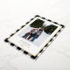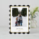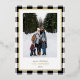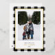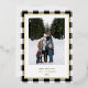 Send holiday greetings with these luxe photo Christmas cards, featuring your favourite vertical photo set against a hand-drawn white and black buffalo plaid pattern framed by a border real gold foil. Customise your holiday message with a modern lettering style in the editable text area, and add your family name in real gold foil!!! The back of the card provides space for an additional photo and a personalised holiday message