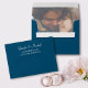 This modern white calligraphy wedding photo with blue envelope is a beautiful and unique way to announce the big day. It's a great way to make a statement and set the tone for the wedding celebration to come.