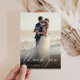 A modern wedding thank you photo card design with white calligraphy and a custom thank you message to your guests at the back. You can freely customise the image and other details.