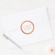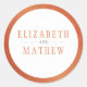Modern White Gold Wedding Classic Round Sticker. With elegant modern typography design. Copper orange and charcoal text on white with a thick faux antique copper border. Personalise with the bride and groom's names. Excellent for envelope seals favours and more.