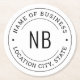 A modern professional custom branded drink coaster design for your business features your business initials framed in a round circle by the name of the company with location city and state. Other wording such as a slogan or website could also be included instead of the location.