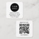 Modern White Custom Logo and QR Code Square Square Business Card design features your business logo and custom QR code on the back. Customise the wording with your preferred business information, such as the business name, address, phone number, or website. Black background and white text colour can be changed.