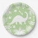 Modern White Dinosaur Bronto Silhouette & Foliage Paper Plate