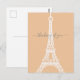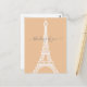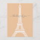 Modern minimalist style white Eiffel Tower silhouette graphic on peach background. Customisable "thinking of you" text