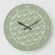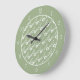 Modern white flower pattern and sage green border wall clock. The focus of this design is the beautiful grey and white floral pattern and the border with the numbers.