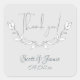 Modern, casual Thank you design features hand written style fonts with simple white floral on trendy light grey background. Customise with names and dates for personal message.
