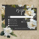 Modern White Gardenias on Black Sparkle Dinner RSVP Card