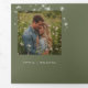 Introducing our enchanting wedding invitation. Delicately crafted on a sage green backdrop, this invitation exudes modern elegance with a touch of whimsy. Adorned with shimmering stars and glittering accents, it captures the magic of a starlit garden soirée or an enchanted holiday ceremony. The pristine white gardenia petals add a dash of romance, while the elegant script font in white text and simple modern font lends a sophisticated touch. With its simple yet stylish design, our invitation sets the perfect tone for your special day. Created by Simply Farmhouse Press.