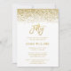 Glamourous white and gold faux glitter fiftieth birthday invitations. Designs are flat printed illustrations/graphics - NOT ACTUAL GLITTER.