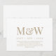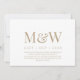 Modern White Gold Monogram Wedding Invitation. Modern typography with couple's initials in elegant antique gold coloured text on white. Personalise with the bride and groom's names, wedding date, wedding venue and adjust the invitation sample text and or colours as you wish.