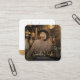 Modern White & Gold Script Logo Full Photo Square Business Card