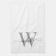 Modern White Grey Custom Monogram Name Script Tea Towel