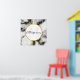 A white circle with a faux-gold frame layered over top with your monogram initial and name inside.