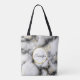 Modern White Grey Marble with Gold Ribbon Monogram Tote Bag