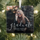 Celebrate the graduate with this modern custom photo graduation ornament, featuring the word "graduate" in white handwriting script, with the school and year of graduation below in white sans serif font. A black gradient overlay ensures that the white text will pop. Perfect for either high school or college graduation.