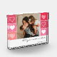 A trendy modern Valentine's Day photo block with white hearts and red/pink colours. Personalise by adding a photo and a personal Valentine's message in a beautiful handwritten script font.