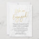 Stylish modern wedding engagement party invitations featuring a "We're Engaged" in a faux gold foil trendy script font, white marble background, and placeholders for your custom engagement party information. The back of the gold engagement party invites can be changed to a colour of your choice with the Customise tool.