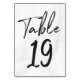 Add a stylish touch to your wedding reception with custom table cards. The wedding table cards feature a white marble background and a trendy script font. Additional numbers can be found in the collection below.