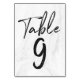 Add a stylish touch to your wedding reception with custom table cards. The wedding table cards feature a white marble background and a trendy script font. Additional numbers can be found in the collection below.