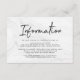 Stylish and modern wedding information enclosure cards featuring trendy black script font, white marble background, and placeholders for your custom wedding details. The back of the wedding information cards can be changed to a colour of your choice with the Customise tool.