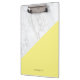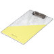 Modern White Marble with Yellow Block Personalised Clipboard | A modern clipboard featuring white marble with pastel yellow block accent. Personalise this clipboard by adding your own details. Other colours are available.