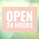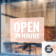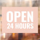 Let your customers know you're always open with this modern blush pink “Open 24 Hours” window cling. Featuring bold white text and a soft contemporary background, this adhesive sign is perfect for cafés, diners, gyms, and other around-the-clock businesses. Easily applies to the inside of glass windows and doors. A stylish, professional way to boost visibility and trust.