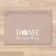 Custom-designed festive kitchen towel for the autumn fall season featuring modern rustic white pumpkin design with personalised family name.