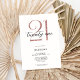 A simple modern 21st birthday invitation featuring elegant calligraphy script typography and minimalist design in white and rose gold.