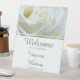 Elegant and modern white rose wedding pedestal sign. Text can be personalise for your wedding day or any type of celebration.