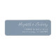 The customisable white text combines an elegant handwriting font and lowercase sans serif text aligned to the right margin on a dusty blue background for a modern, minimalist effect.