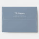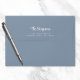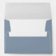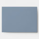 Modern dusty blue envelope with your family name monogrammed in a stylish white script and your return address in classic white serif typography.