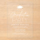 Modern graduation party invitations featuring a white graduation cap at the top of the design with "Graduation Party" displayed in white script typography on a frosted or transparent acrylic background. Personalise the minimalist graduation party invitation with the graduate's name and party details. The acrylic graduation party invite is perfect for celebrating both high school and college graduates.