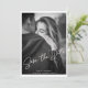 Modern White Script Photo Wedding Save The Date, This trendy, elegant beautiful calligraphy lettering in white overlays your photo save the date card. Invitation features a beautiful free-spirited hand-written Save the Date script. All text are simple to edit. A stylish and simple invitation that will highlight your date's personal photos!, Click the edit button to customise this design.