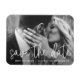 Modern photo save the date magnet with your full bleed horizontal picture featuring a typography overlay with the words, "save the date" in a thin white handwriting script font. Below is one line of text for your wedding details. A simple yet elegant design that makes your photo the main feature.