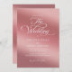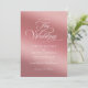 This Modern White Script Typography Rose Gold Wedding Invitation features clean white lettering on a smooth rose gold background. The design offers a stylish and elegant look suitable for any modern wedding theme. It is easy to personalize with names, dates, and event details. You can order it as a printed cards or digital download.