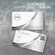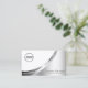 Very elegant white and silver coloured business card design with a noble shimmery silver decor.