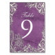 modern white swirls purple wedding table number