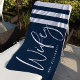 Modern Wifey Script Nautical Navy & White Stripes Beach Towel