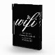 Cool script wifi sign that can be personalized with your network and password details. Perfect for hotels, office and companies, rental homes, guest rooms and any location where you need to share your internet network password. You can customize the background color to match your business or company brand. Designed by Thisisnotme©
