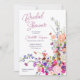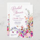 Elegant modern spring summer flowers illustration with pretty wild flower and brush script bridal shower with a modern calligraphy typography with red, purple, pink , terracotta flowers , add your QR code at the back for more infos and details.