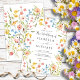 Invitation. A simple, elegant frame of watercolor meadow floral in blush pink, soft peach, blue, yellow, orange, and sage green surrounds modern, clean lettering. Perfect for rustic, floral, garden, boho, spring, summer, or wildflower-themed weddings. This minimalist chic design combines romance, colour, and sophistication—ideal for outdoor ceremonies or countryside celebrations with a whimsical touch.🌸🌿