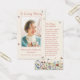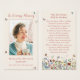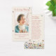 This is a modern and whimsical memorial prayer card. The design features a beautiful calligraphy font and lovely wildflowers in pastel pink, purple, blue, yellows and rust reds or terracotta and also delicate fluttering butterflies. This funeral prayer card can easily be personalised with your own photo to create a special tribute for your loved one using the template provided. Please contact the designer for any queries regarding this design or for any matching products.