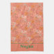 Orange flowers pattern custom name orange Kitchen Towels
