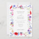 Beautiful watercolor floral artwork ideal for spring or summer wedding. A whimsical yet elegant design with modern typography script in charcoal grey with easy to personalise templates. Wildflower paintings include vibrant red poppies, cornflowers, cosmos flowers, forget me nots and billy buttons in purple, pink, sage green, teal, orange and blue. Original botanical artwork by artist Catherine Sweetman