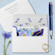 Elegant and Stylish typography script with beautiful hand painted watercolor wildflowers make these wedding envelopes with personalised return address perfect for a spring or summer wedding. Unique meadow wildflowers including cornflowers, poppies, cosmos, forget me nots with delicate foliage painted by artist Catherine Sweetman in cornflower blue, blush blue, navy blue, purple and green hues. Ideal for the botanical garden or outdoor spring summer wedding. Find matching items in the modern wildflower Blue wedding suite