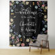 Modern Wildflowers Black Wedding Welcome Backdrop Tapestry